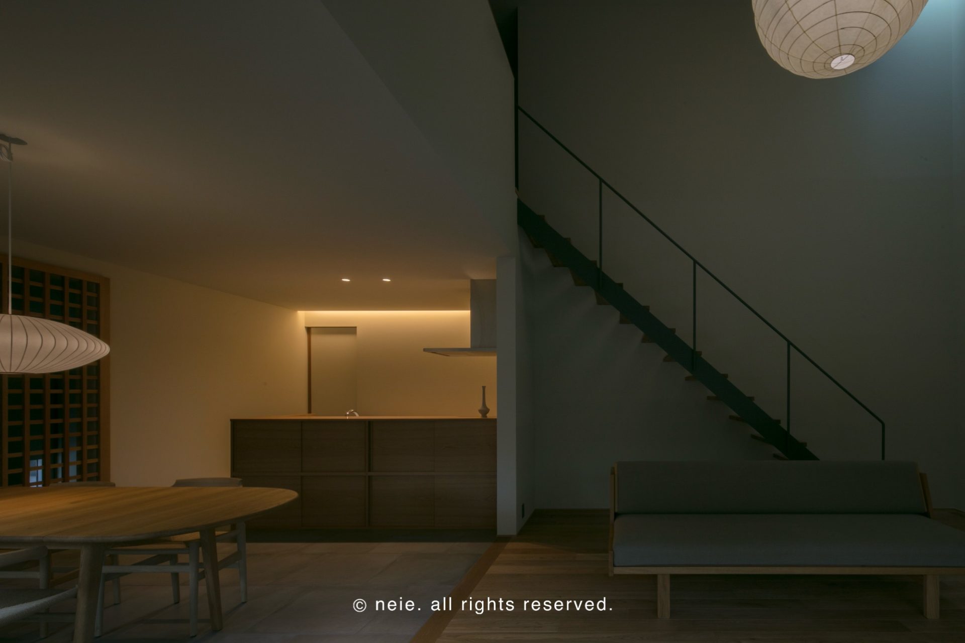 works HOME建築事例内に静と動を宿す家 内に静と動を宿す家 深く伸びた軒先が光を巧みに調整し、内と外とを繋ぐ心地よい半屋外空間を生み出します。 吹抜けリビングの空へと抜けるような開放感と、天井を抑えた和室の街の喧騒を忘れさせる静けさ。 この巧みな空間の対比が、日々の暮らしに豊かな表情と奥行きを与えます。 Tags #ワークスペース #二階建 #吹き抜け #和モダン #和室 #塗り壁 #庭 #造作キッチン #造作家具 #造作洗面台