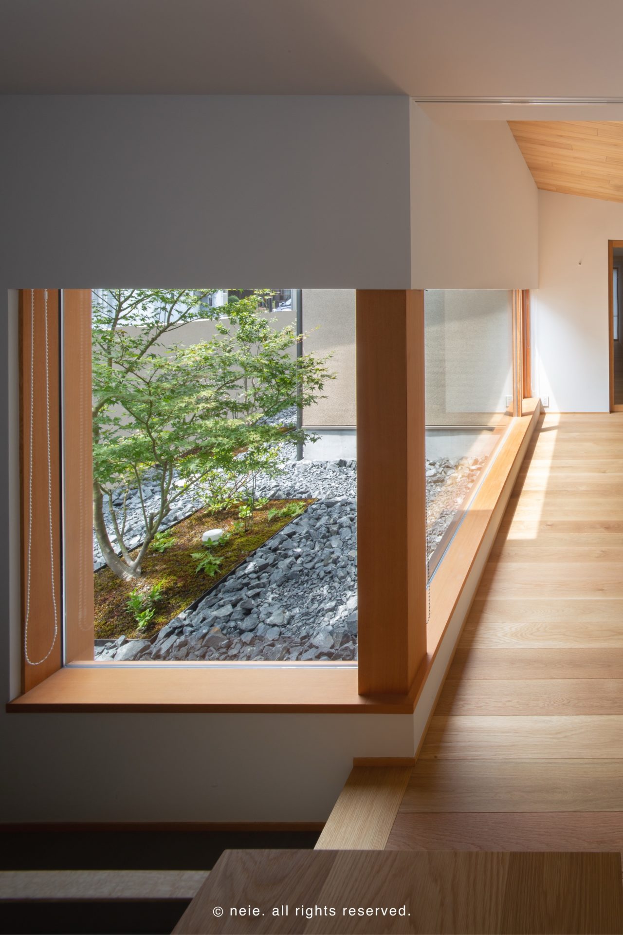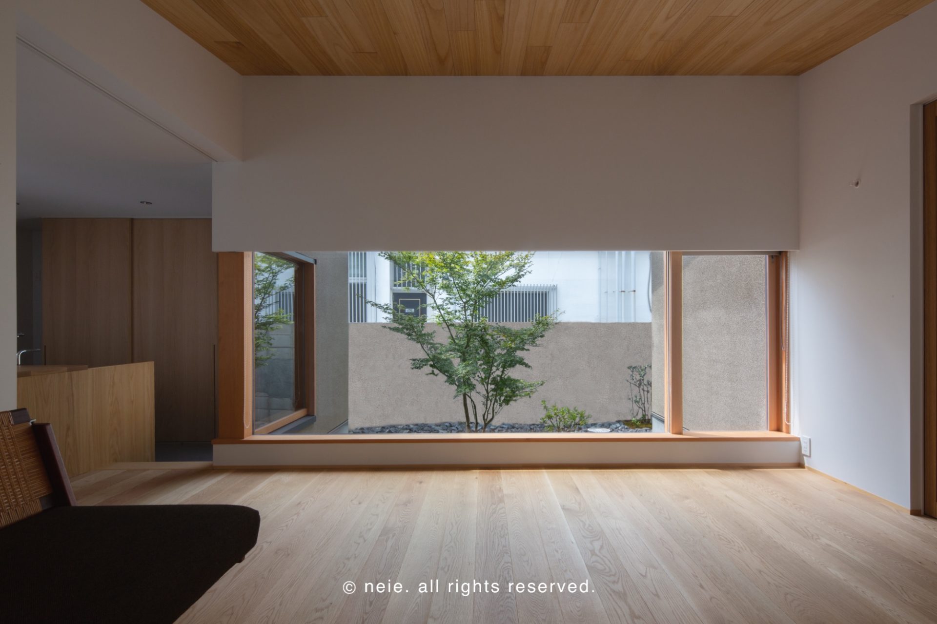 works HOME建築事例四季の自然を愛でる、木の平屋 四季の自然を愛でる、木の平屋 木の温もりに満ちた平屋。中庭の木々が季節の移ろいを告げ、室内に柔らかな光と影を落とします。 手の届く範囲で丁寧な暮らしを営むことで、日々のささやかな変化や、木や土が持つ素材の表情を慈しむ時間が生まれる。 広過ぎない空間だからこそ感じられる、心豊かな愉しみがここに広がっています。 Tags #中庭 #勾配天井 #和室 #塗り壁 #平屋 #造作キッチン #造作家具 #造作洗面台